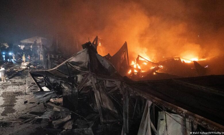 وأظهرت لقطات من وسائل الإعلام المحلية التقطت خلال الليل ألسنة اللهب وهي تلتهم مبنى من طابق واحد، بينما كان الدخان الكثيف يتصاعد من قسم آخر من المجمع نفسه، وكان العمال ينقلون الجثث على نقالات. وقال سائق سيارة الإسعاف الحاج فهيم “عندما وصلت (الليلة الماضية)، رأيت أن كل شيء يحترق، والناس يحترقون… وفي الصباح الباكر اتصلوا بي مرة أخرى وطلبوا مني العودة لأن هناك جثثا لا تزال تحت الأنقاض”.