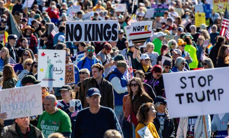 عبّر عدد كبير من المتظاهرين السبت (18 أكتوبر/تشرين أول 2025) عن غضبهم ضد الرئيس الأمريكي دونالد ترامب في كل أنحاء الولايات المتحدة . وتوقع المنظمون نزول ملايين الأمريكيين إلى الشوارع تحت شعار “نو كينغز” أي “لا للملوك” احتجاجا على ما اعتبروه “استبداد” الرئيس الجمهوري.