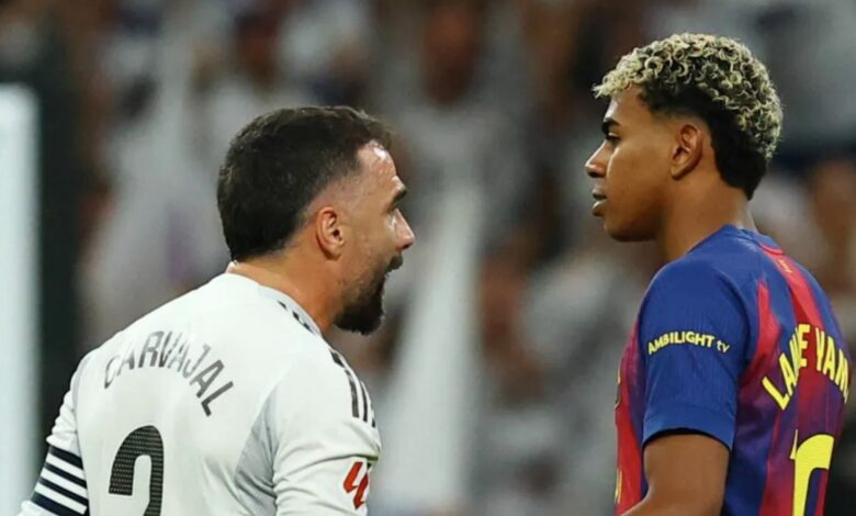 قبل المباراة بيومين، أطلق لامين يامال تصريحات ساخرة وصف فيها ريال مدريد بأنه “فريق شكاك وسارق”، ما أشعل الأجواء قبل انطلاق اللقاء. ومع بداية المباراة، كاد يامال يتسبب بركلة جزاء ضد فريقه، لولا تدخل تقنية الفيديو. الجماهير المدريدية لم ترحمه، إذ أطلقت صافرات الاستهجان كلما لمس الكرة، واحتفلت بفقدانه للاستحواذ أو تمريراته الخاطئة. أداء يامال جاء باهتاً، إذ لم يسدد سوى مرة واحدة، وفقد الكرة ثماني مرات، ونجح في مراوغة واحدة فقط، بينما تعامل معه ألفارو كاريراس بصلابة دفاعية واضحة.