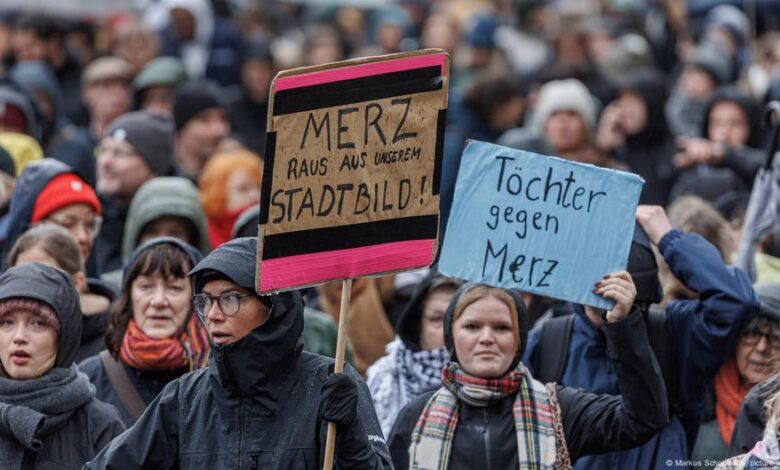 الاحتجاجات ضد تصريحات ميرتس لم تكن من المهاجرين واللاجئين فقط، بل خرج ألمان إلى الشوارع معبرين عن رفضهم للتصريح الذي اعتبره كثيرون عنصري.