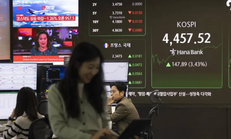 ارتفع مؤشر الأسهم الكوري الجنوبي القياسي بأكثر من 3 في المائة يوم الاثنين ليغلق عند مستوى غير مسبوق، مدعوماً بمكاسب قوية لأسهم شركات تصنيع الرقائق الإلكترونية. Source link